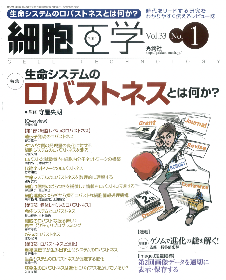 さらに、ロバストネス解析では研究費も取れなかった。科研費の「システムバイオロジー」という特設領域ですら通らなかった。さきがけ2回目は面接まで行ったが落ちた。新学術やCRESTなど領域研究のグループにも参加させてもらったが、ダメだった。なお、この頃(2012年)字面をよくするために、「遺伝子綱引き法」が「遺伝子つなひき法」となった。上記の論文達もバンバン引用されるということもなく、今も静かにそこにある。「細胞工学」誌から依頼されて「ロバストネス特集」というものやり、自身でも「タンパク質の発現量の変化に対する細胞システムのロバストネスを測る」という解説記事を書いたが、ほとんど反響がなかった。その後、細胞工学自体が廃刊になった。ロバストネス特集などと言うトリッキーなことをやったからかも知れない。