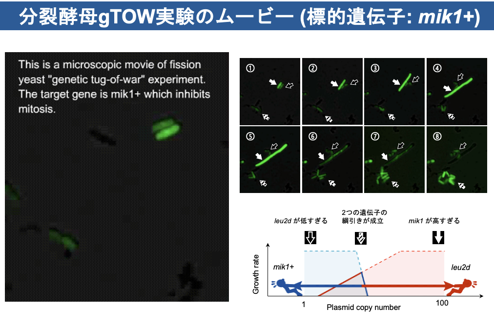 この動画を撮るのは相当苦労したが、まさに一目瞭然で、gTOWを分かってもらうためにとても役立っている。「分かってもらう」ためだけに労力を割くことの重要さを物語っている。これは分裂酵母gTOWの論文のサプリメンタリートして組み込んだが、特に長尺のプレゼンでもはよく使っている。