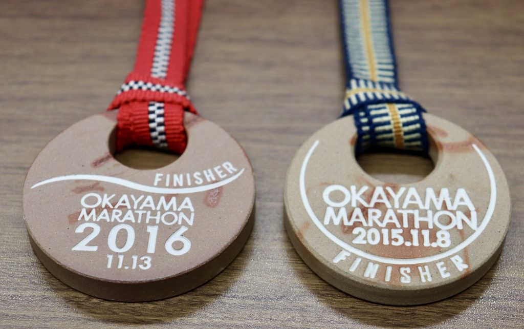 また余計な前置きが長くなってしまったのですが、備前焼メダルを記念品にしたいと考えたのは、私自身が岡山マラソンの完走記念品で備前焼メダルをもらっていたからです。「備前焼がこういう風に価値を持つのか」、と感心しました。